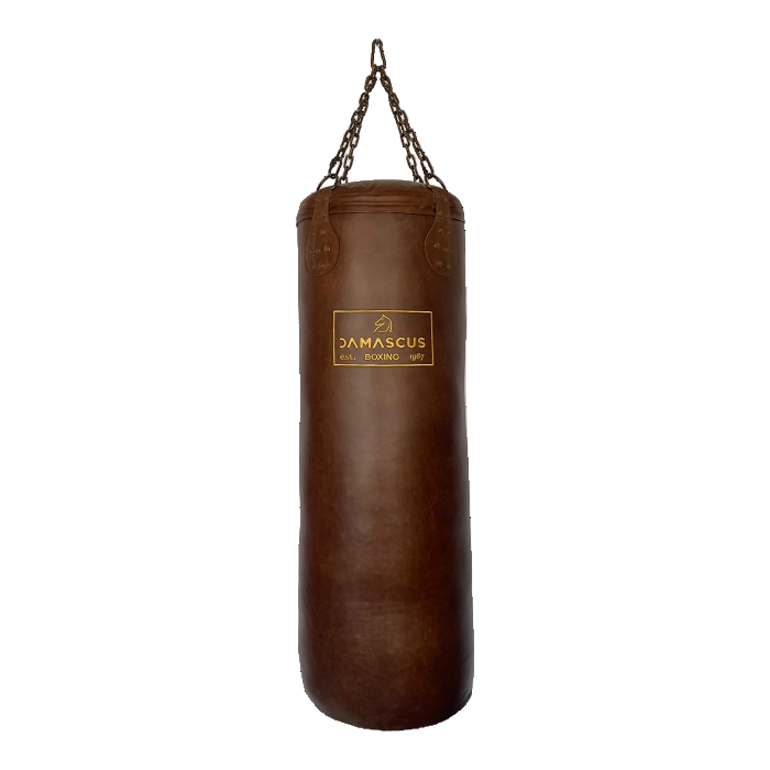 50kg Punch Bag: Vintage Leather Imbuia with Gold Embroidery