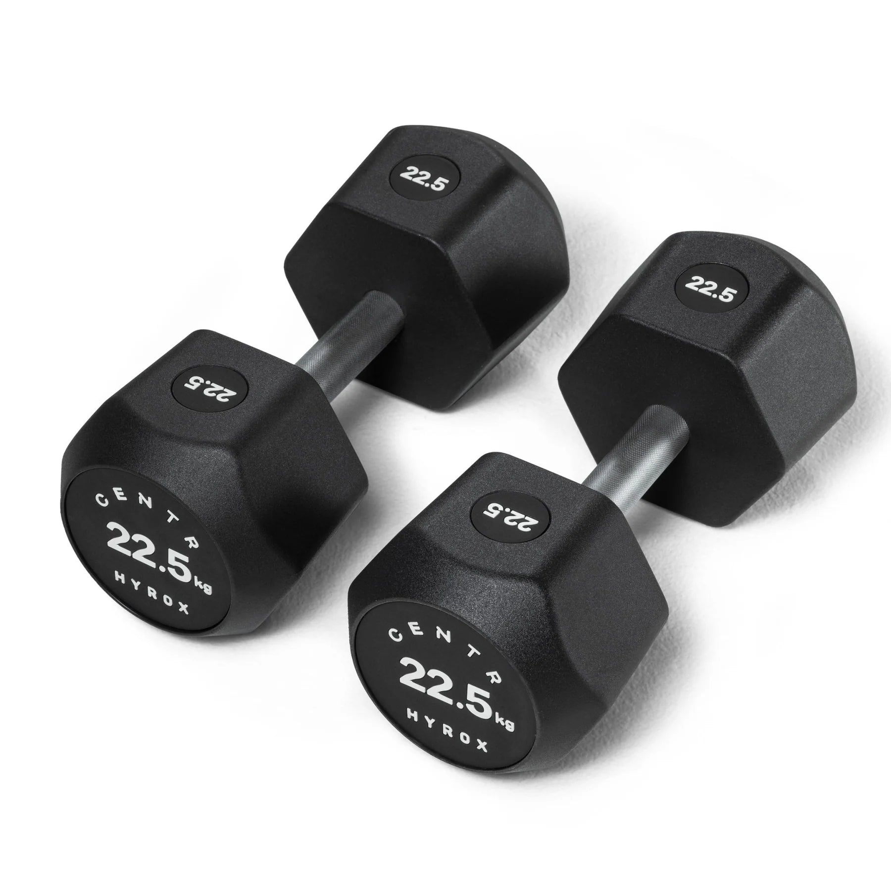 The Centr x HYROX Urethane Dumbbells deliver superior durability and stability for any athlete. Protected by a tough and UV-resistant urethane coating, and engineered with a precise double weld process, to perfectly fit the dumbbell head onto the steel handle, these dumbbells will stand up to the toughest of workouts.