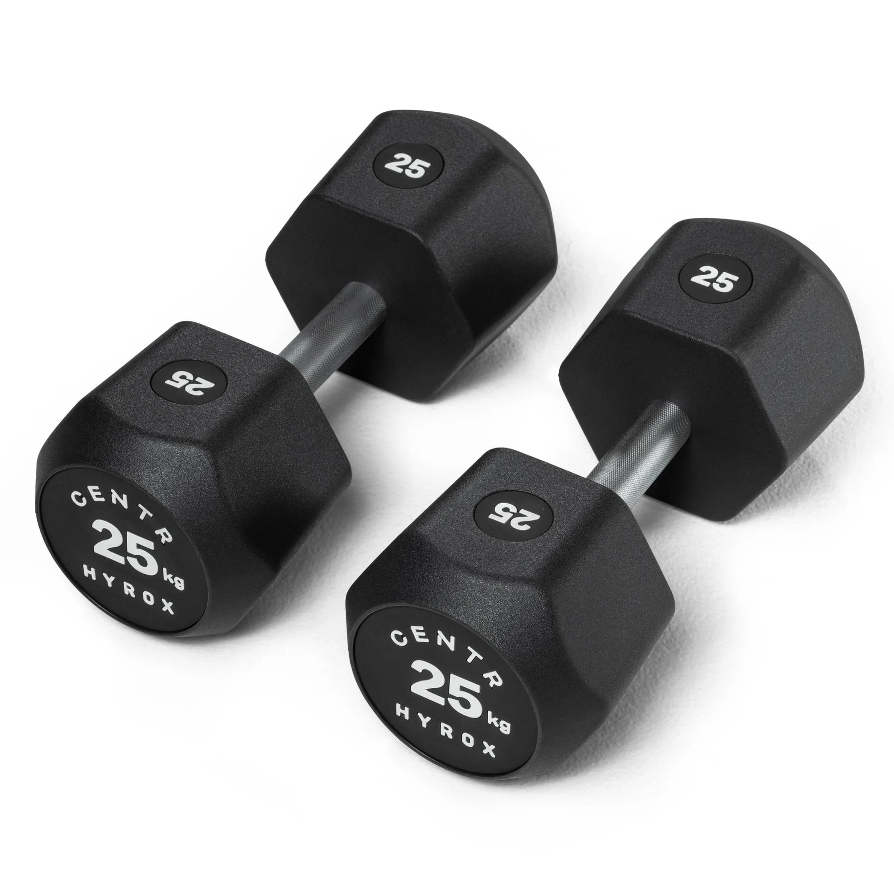 The dumbbells’ 6-sided head prevents rolling to keep your setup secure, while the easy-grip, straight handles are designed for comfort and fit. The unique, identifiable weight labels on both the edge and end allow for seamless transitions between sets. Available in weights ranging from 5 kg to 25 kg, there's a pair for everyone at every level.