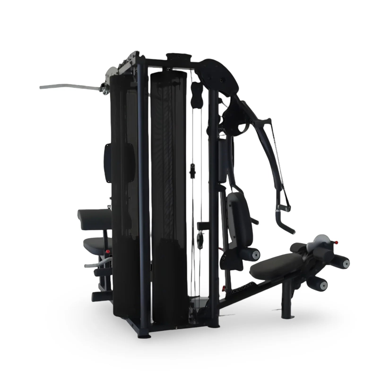 Equipped with both fixed and free motion stations that deliver a full body workout - including 2 press arms, seated leg curl and leg extension station, free movement handles, a row station and pulleys