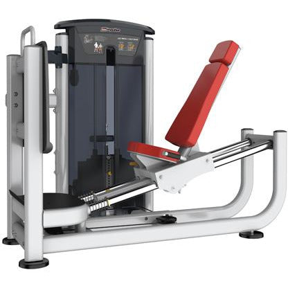 Pin selectorized equipment for mainly working out quadriceps femoris and auxiliarily working out gluteus maximus and musculus gastrocnemius. The exerciser could effectively work out the muscles of leg and hip by pressing the foot plate after choosing the appropriate weight.