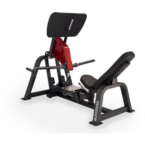 Plate loaded equipment for mainly working out quadriceps femoris and auxiliarily working out gluteus maximus and gastrocnemius muscle. The exerciser could effectively work out the leg and hip muscles by stepping on the front pedal after loading appropriate weight.