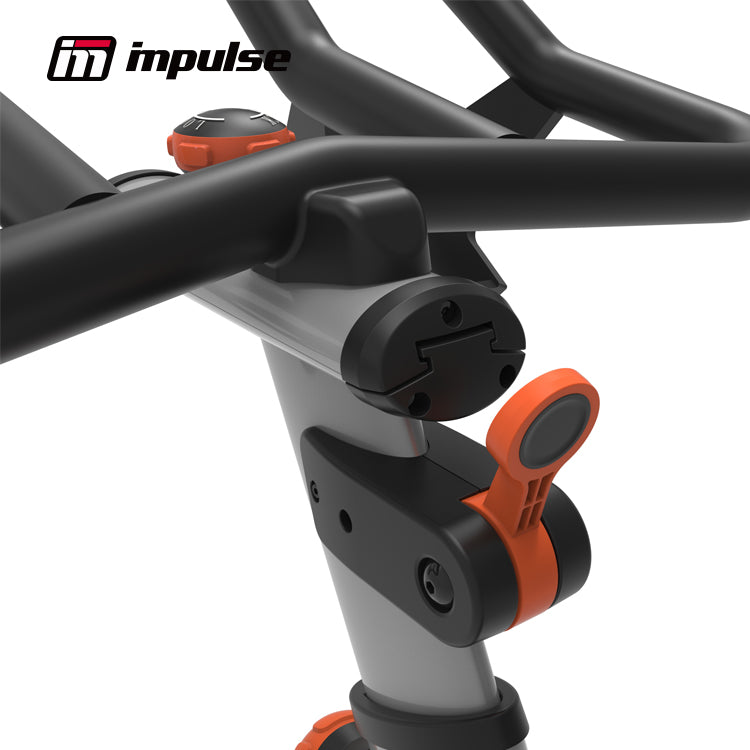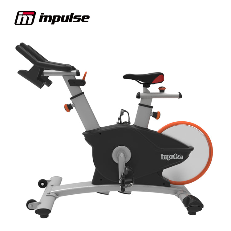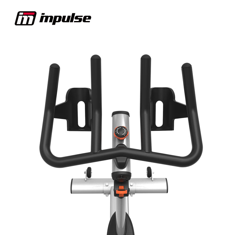 The Impulse Health® PS450 is a premium commercial-grade spin bike for performing indoor cycling training workouts and cardiovascular exercises at home or in a group fitness setting at a gym. It boasts an aggressive rear flywheel design with magnetic resistance for a reliable, quiet, smooth ride