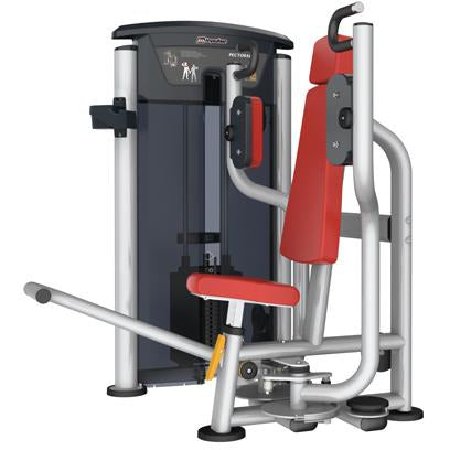Pin selectorized equipment for working out pectoralis major. The exerciser could effectively work out the pectoralis major after choosing the appropriate weight.